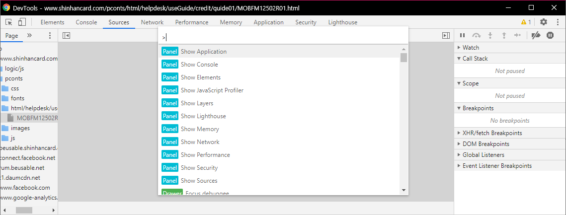 3. 개발자 도구에서 Ctrl + Shift + P 를 누른다.