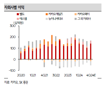 · 모빌리티와 페이는 양호했으나, 콘텐츠(-10.4%) 사업이 신작 부재, 경쟁 심화 영향으로 게임(-12.7%), 뮤직(-11.2%), 스토리(-2.0%), 미디어(-18.7%)로 전분기와 유사한 분위기