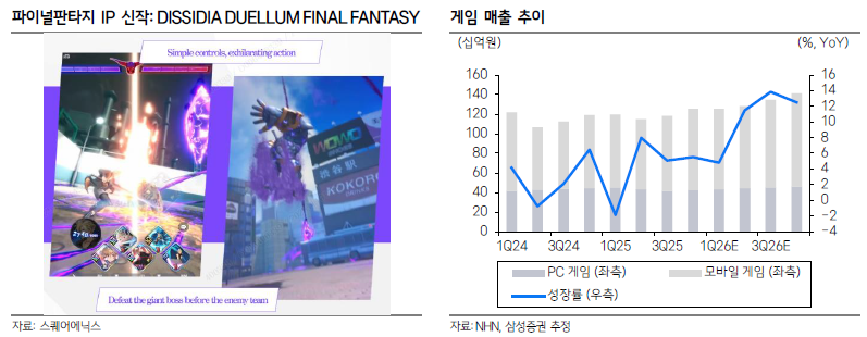 · ’26년 상반기에는 출시 연기된 퍼즐스타, 토파즈 등의 출시와 더불어 파이널판타지 IP 기반 신작 Dissidia Duellum FF 출시가 예정되어 있어 매출 반등이 기대