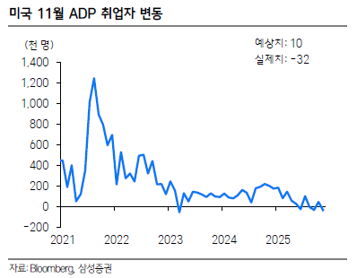 - 11월 ADP 민간고용, 예상치 큰 폭 하회하며 금리인하 전망 지지