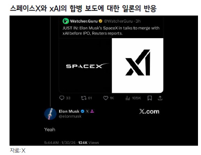 · 해외 언론에 스페이스X와 xAI가 주식 교환 방식을 통한 합병 가능성 제기